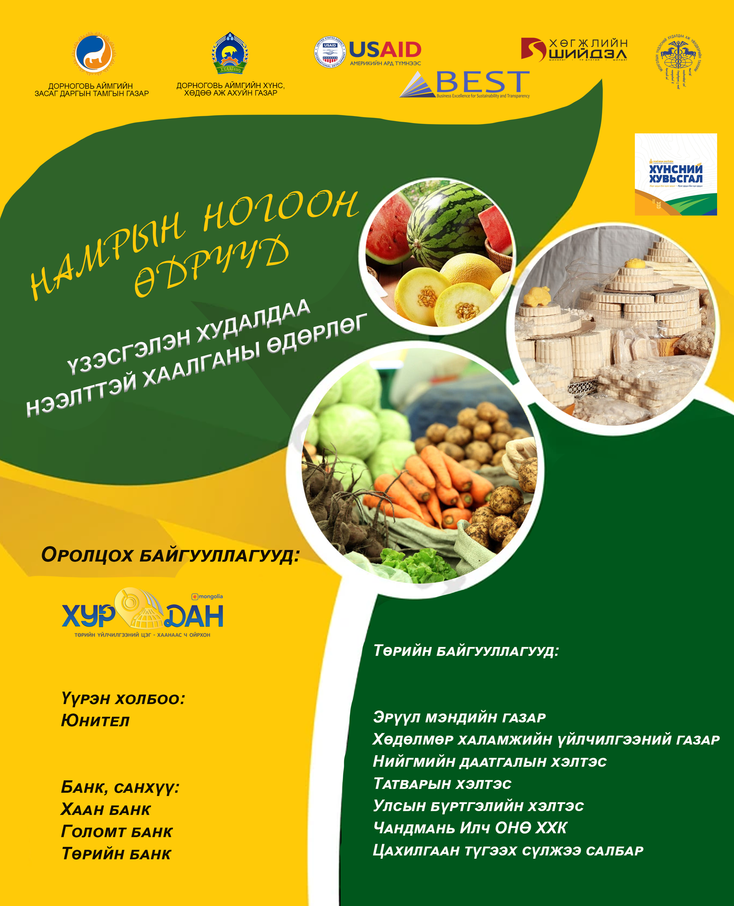 ҮЙЛДВЭРЛЭЛ ЭРХЛЭГЧ НАРЫГ НАМРЫН НОГООН ӨДРҮҮД ҮЗЭСГЭЛЭН ХУДАЛДААНД ӨРГӨНӨӨР ОРОЛЦОХЫГ УРЬЖ БАЙНА.