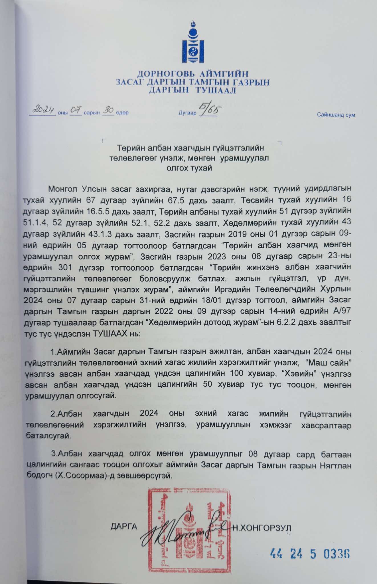2024 оны хагас жилийн байдлаар албан хаагчдын гүйцэтгэлийн төлөвлөгөөний тайланг үнэлэн урамшуулал олгох тухай 2024-07-30 Аймгийн Засаг даргын Тамгын газар Төрийн захиргааны удирдлагын хэлтэс 2024 оны хагас жилийн байдлаар албан хаагчдын гүйцэтгэлийн төлөвлөгөөний тайланг үнэлэн урамшуулал олгох тухай Файл ( 1 ) # Файлын нэр Тайлбар 1 471768716_966381705367222_2479095675468562879_n.jpg