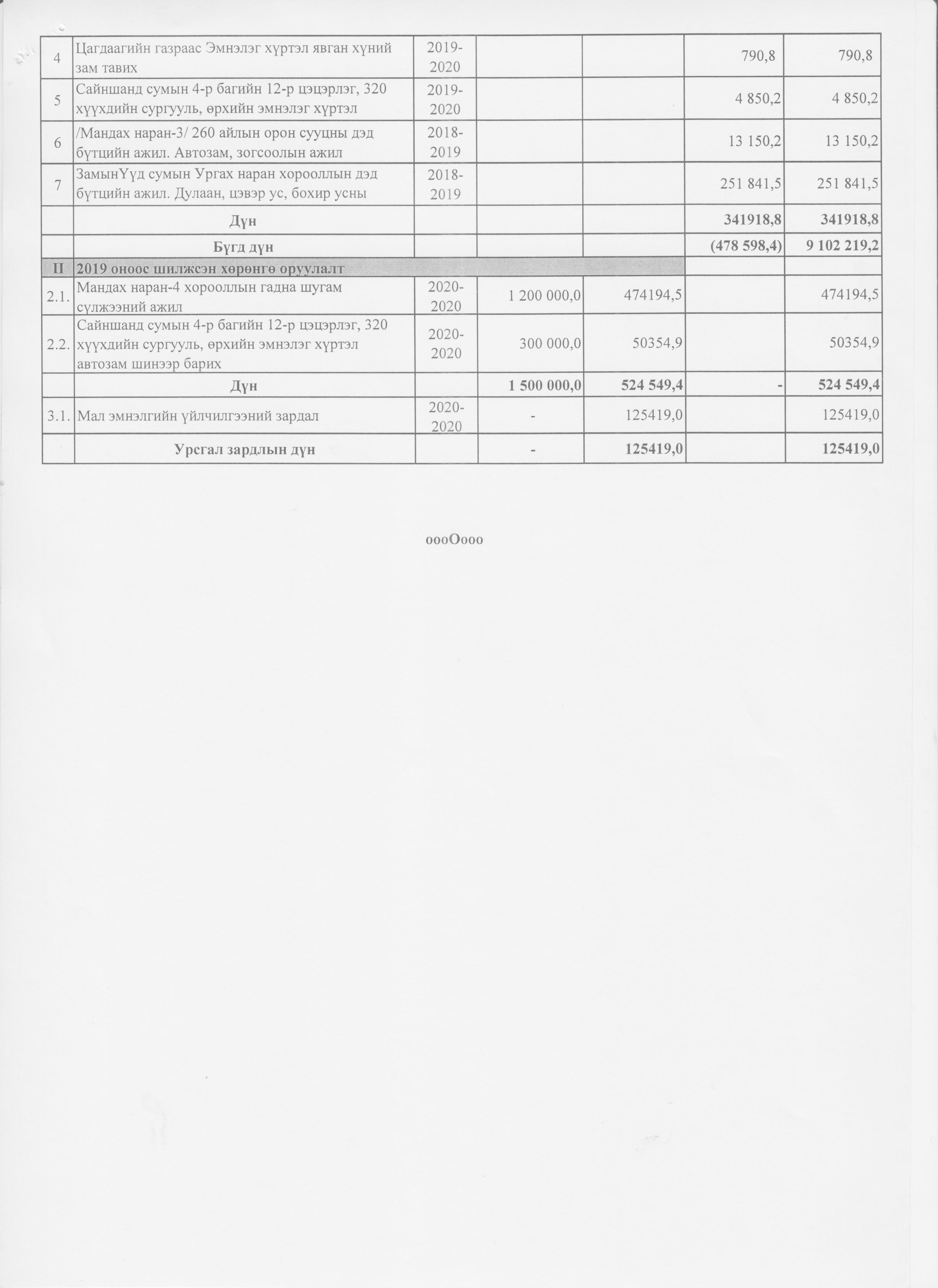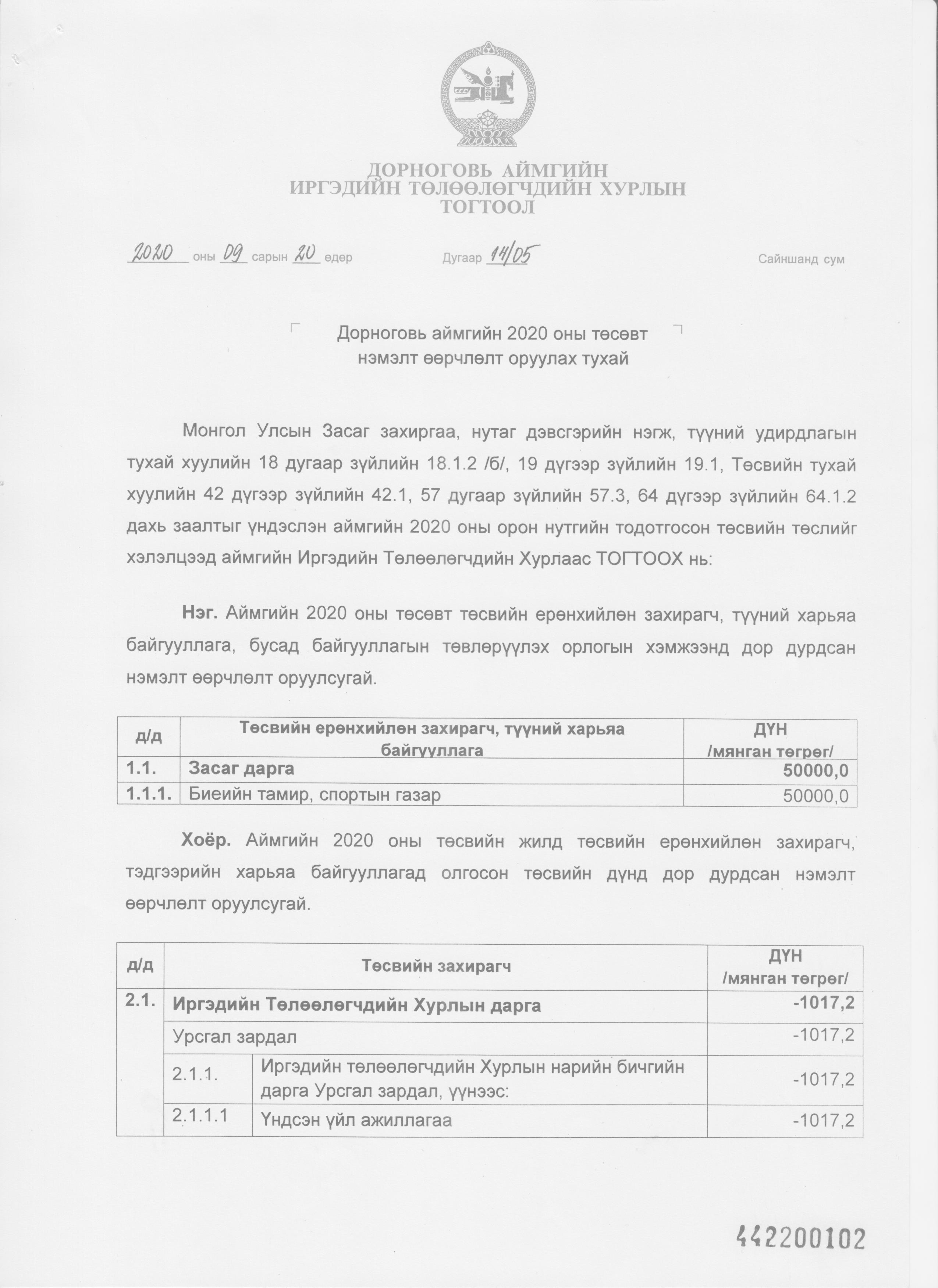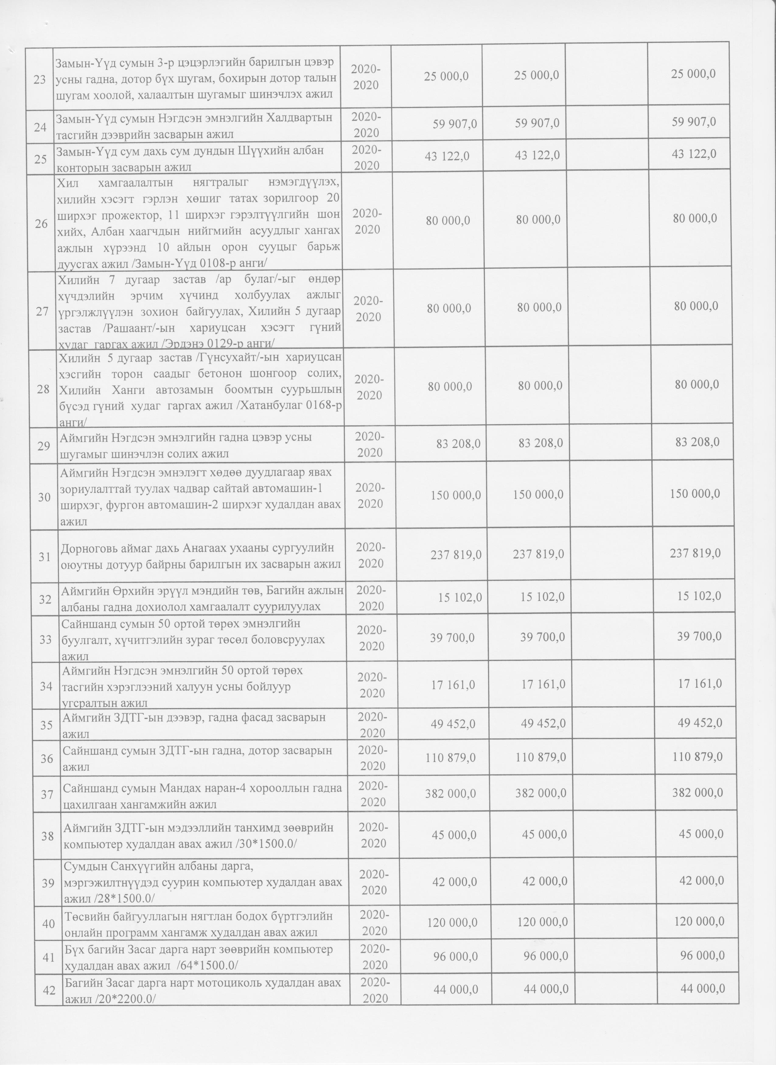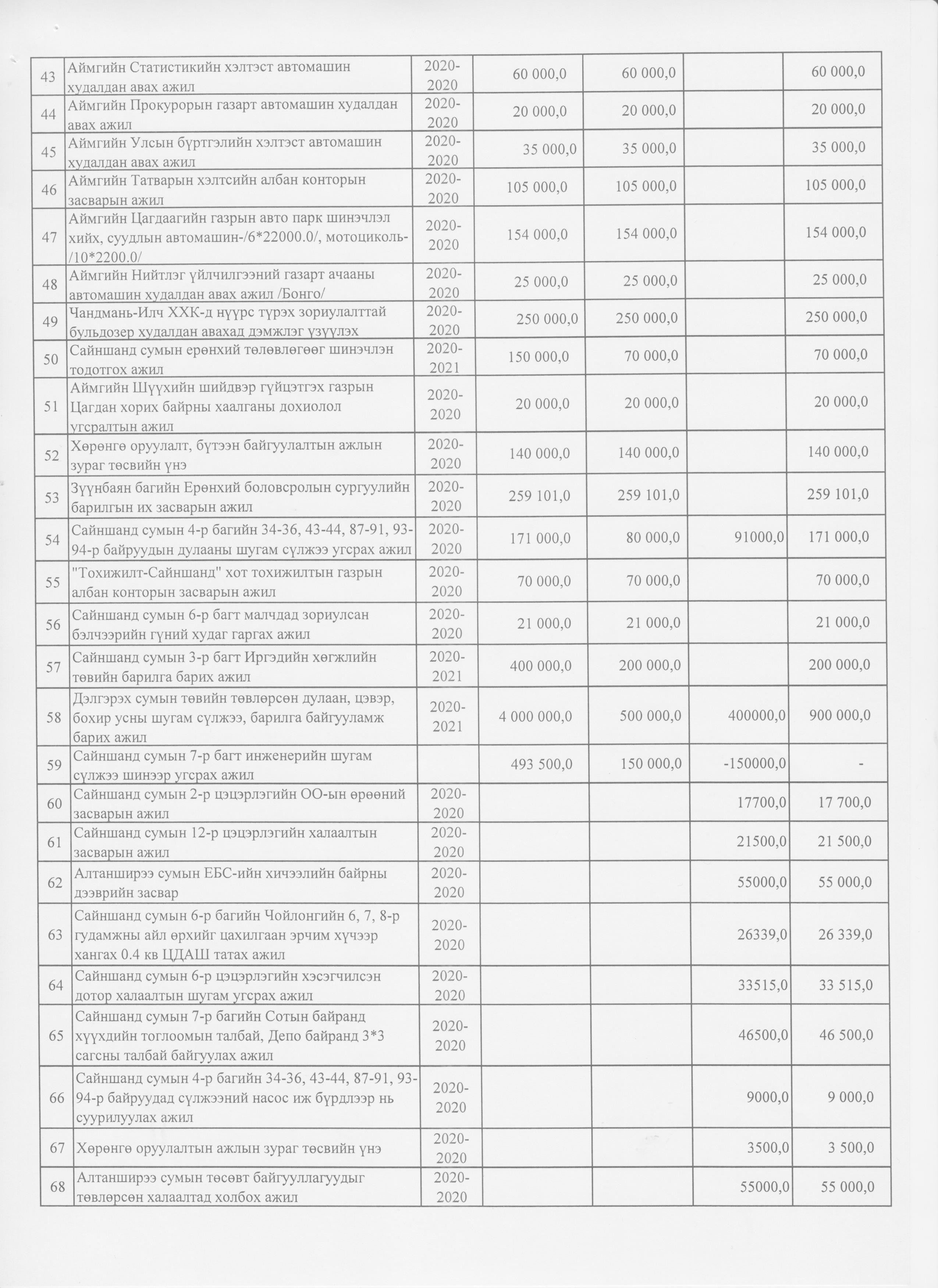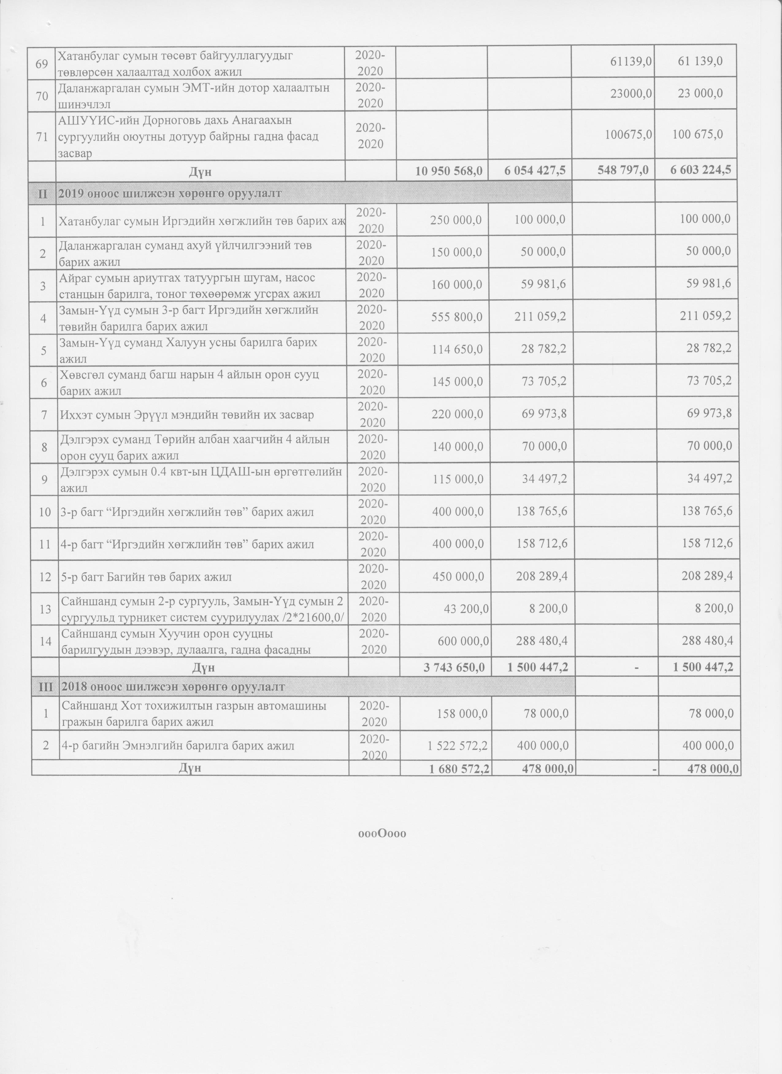 Аймгийн 2020 оны төсвийн нэмэлт өөрчлөлт 2020-10-29 Аймгийн Засаг даргын Тамгын газар Анхчимэг Аймгийн 2020 оны төсвийн нэмэлт өөрчлөлт Зураг ( 11 ) Файл ( 1 ) ‹ › # Файлын нэр Тайлбар 1 2020-тод-төсөв.xlsx