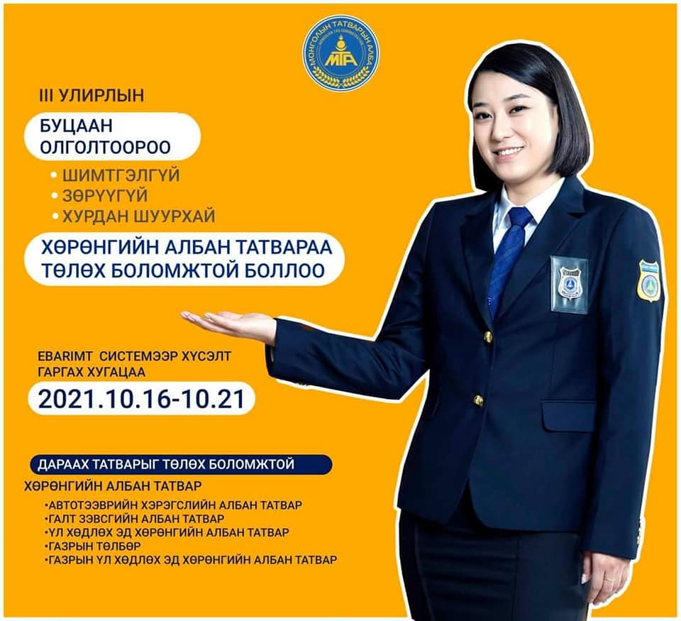 НӨАТ-ын буцаан олголтоороо татвараа төлөх боломжтой боллоо.