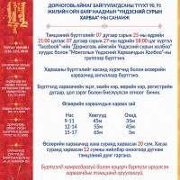ДОРНОГОВЬ АЙМАГ ҮҮСЭН БАЙГУУЛАГДСАНЫ ТҮҮХТ 90, 91 ЖИЛИЙН ОЙН БАЯР НААДМЫН НЭЭЛТИЙН ҮЙЛ АЖИЛЛАГАА "ТӨВ ЦЭНГЭЛДЭХ ХҮРЭЭЛЭН"-Д 2022 ОНЫ 07-ДУГААР САРЫН 29-НИЙ ӨДӨР 10:00 ЦАГТ БОЛНО.