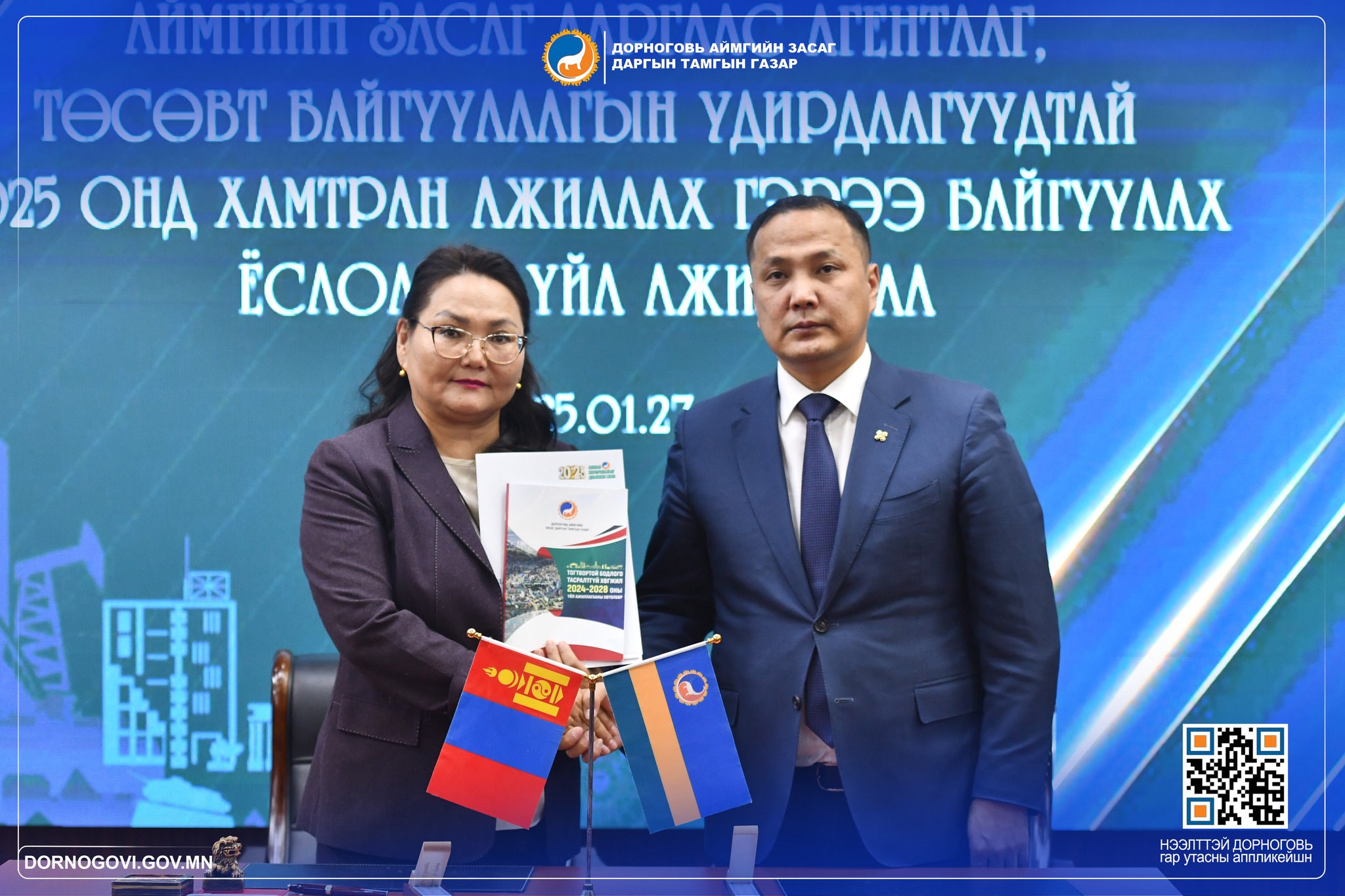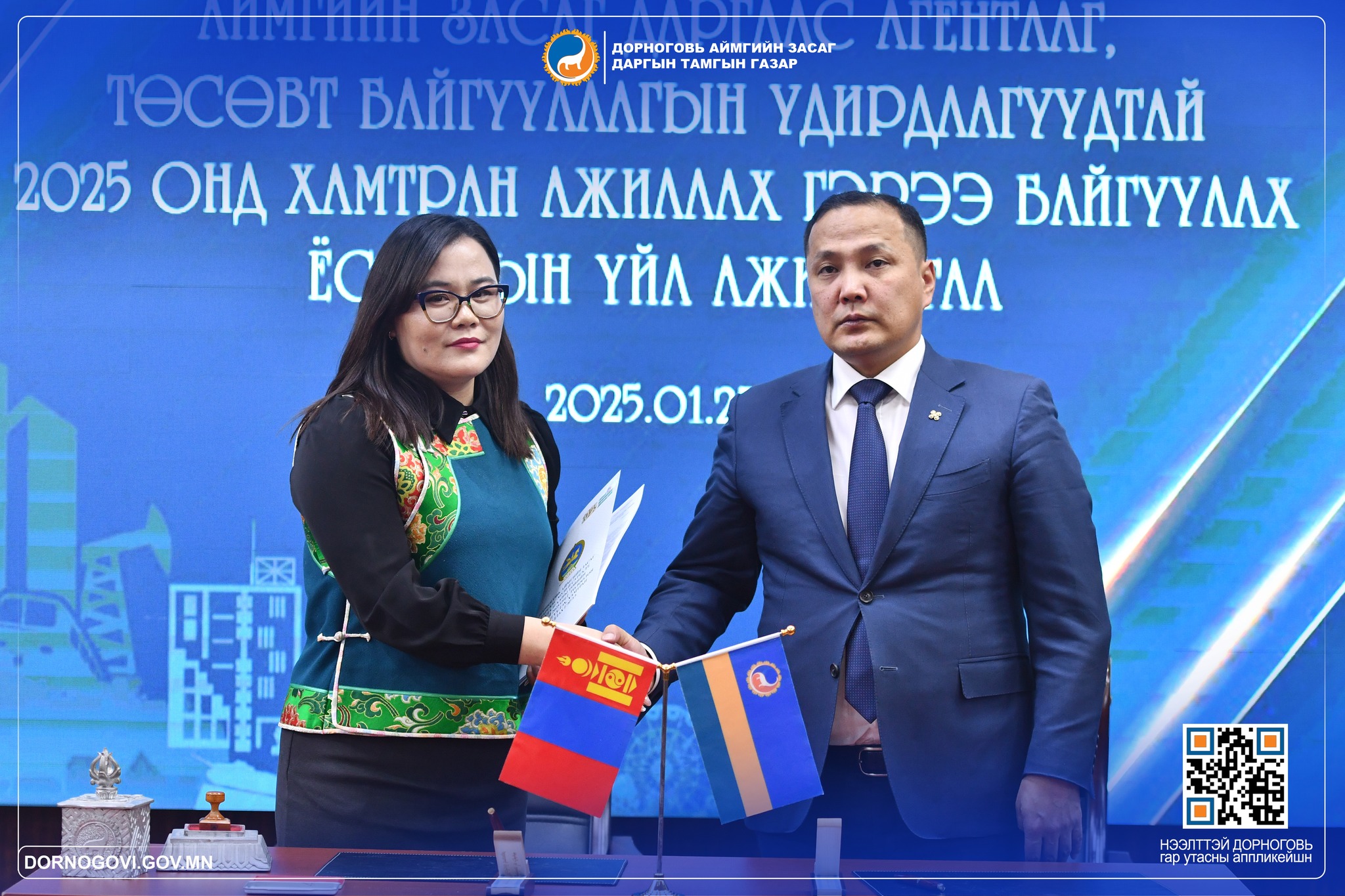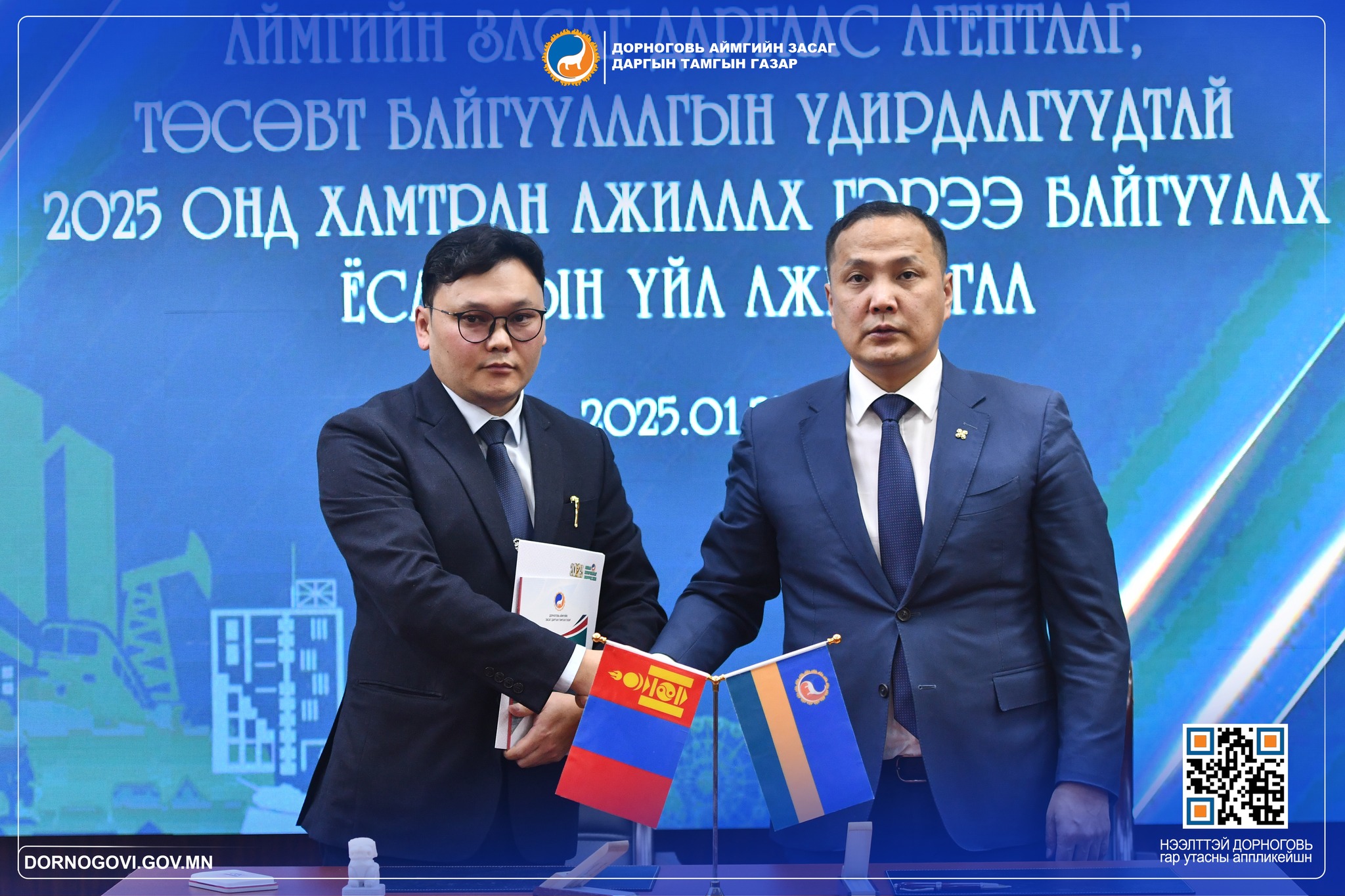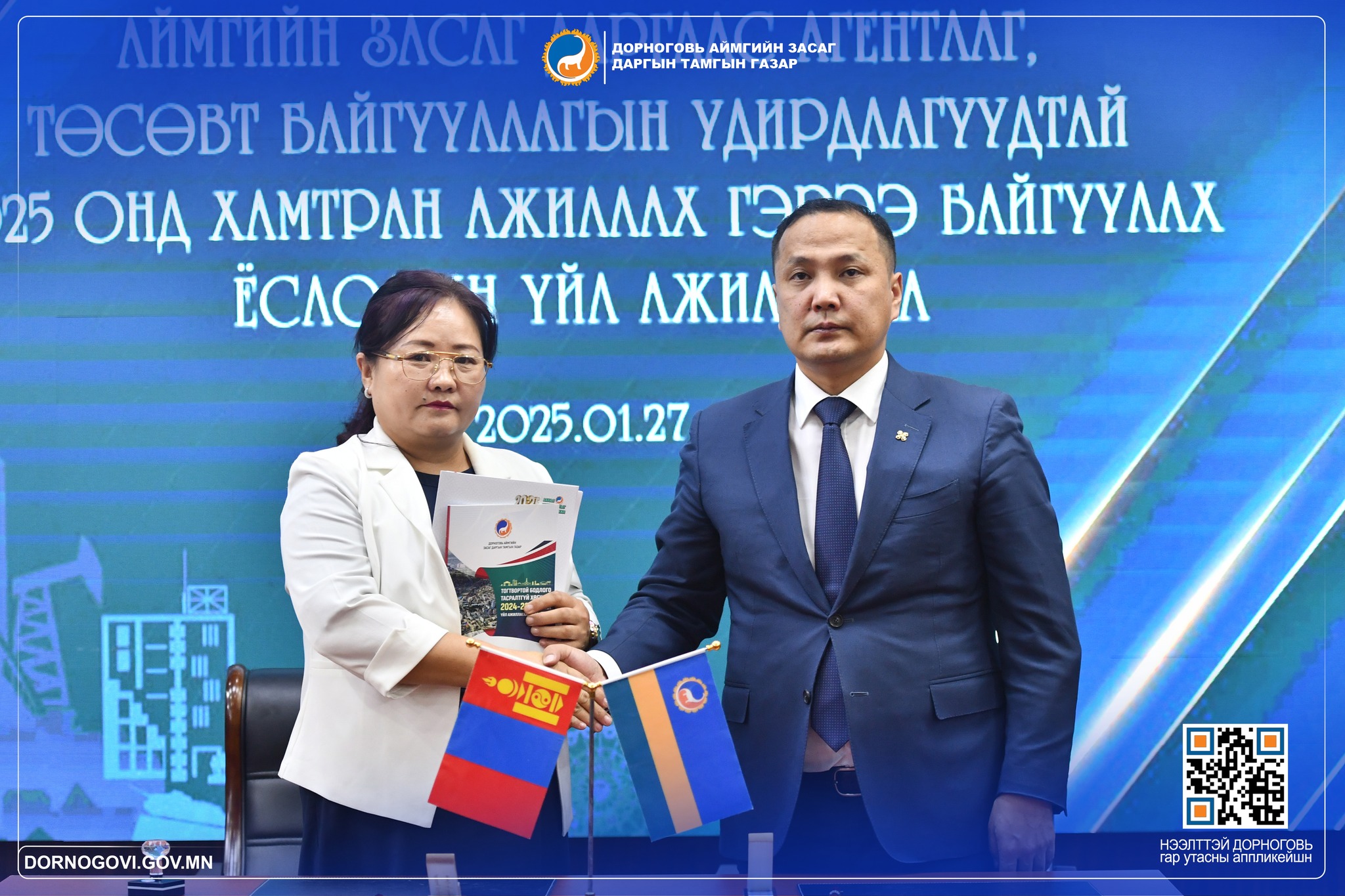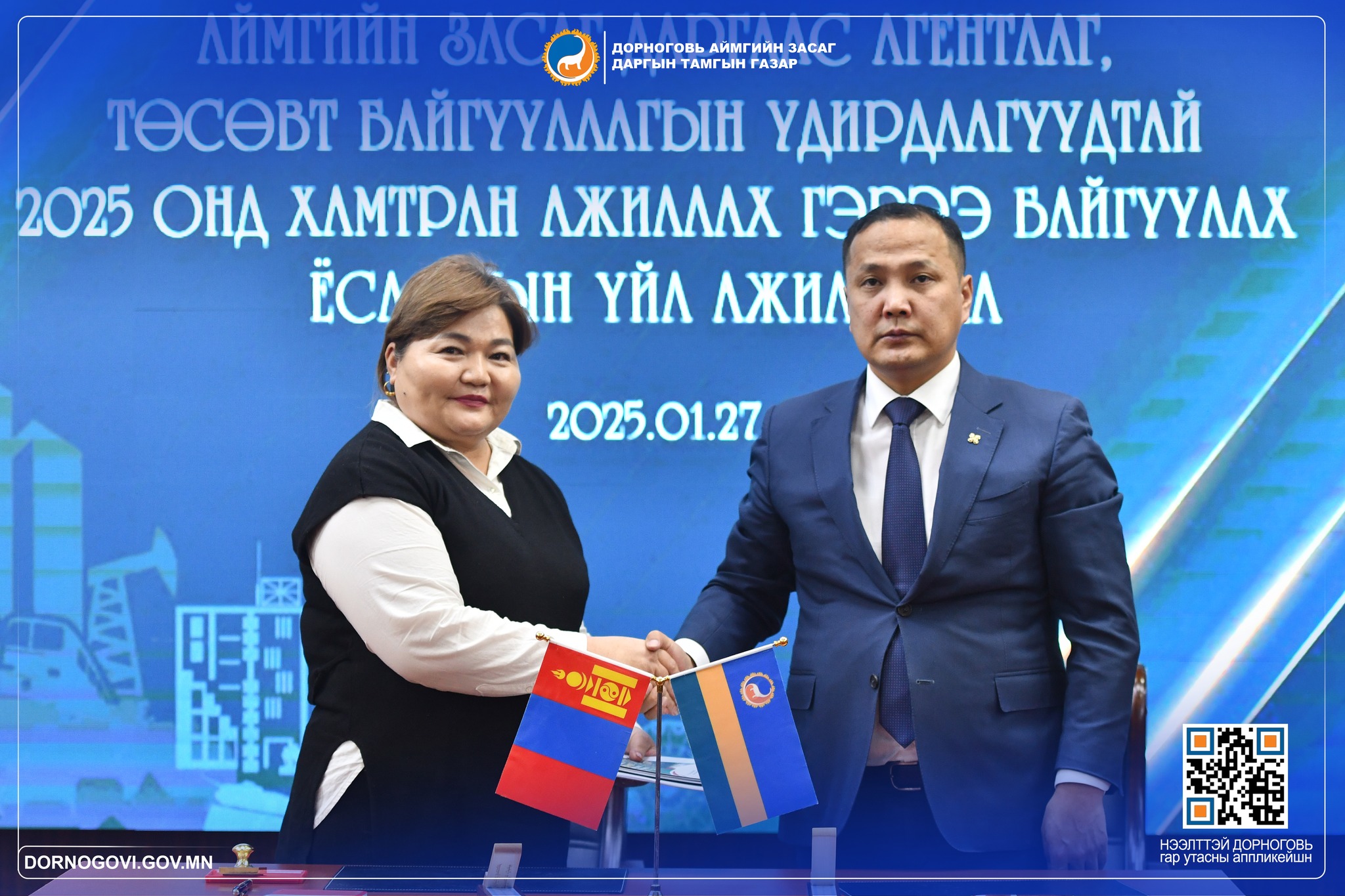 АЙМГИЙН ЗАСАГ ДАРГААС СУМЫН ЗАСАГ ДАРГА, АГЕНТЛАГ, БАЙГУУЛЛАГЫН ДАРГА НАРТАЙ 2025 ОНД ТӨЛӨӨЛӨН ГҮЙЦЭТГҮҮЛЭХ, ХАМТРАН АЖИЛЛАХ ГЭРЭЭ БАЙГУУЛЛАА