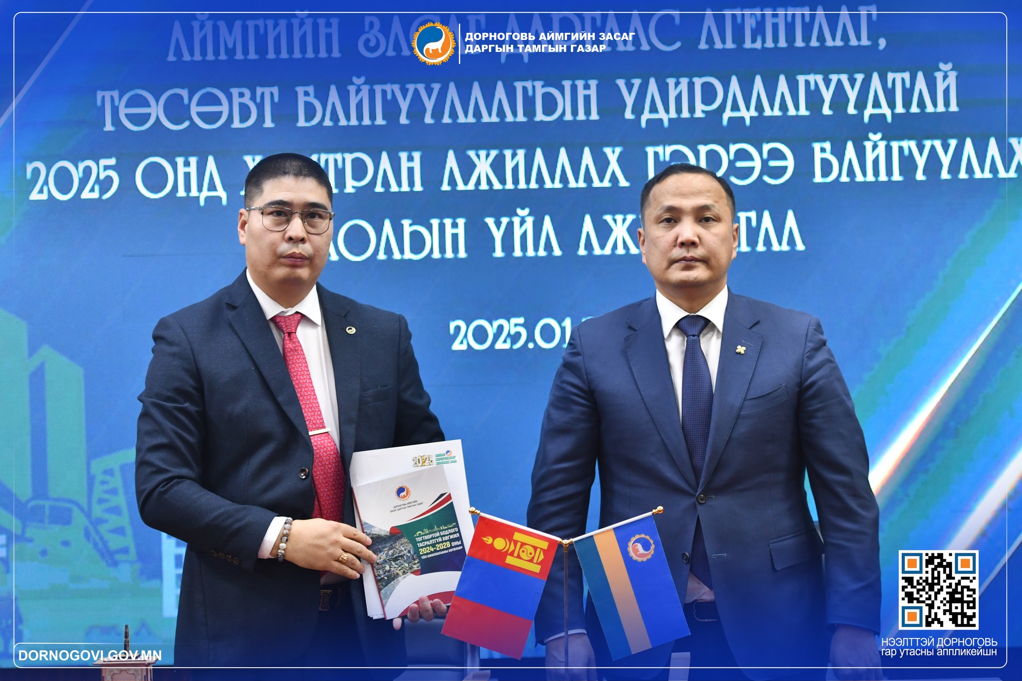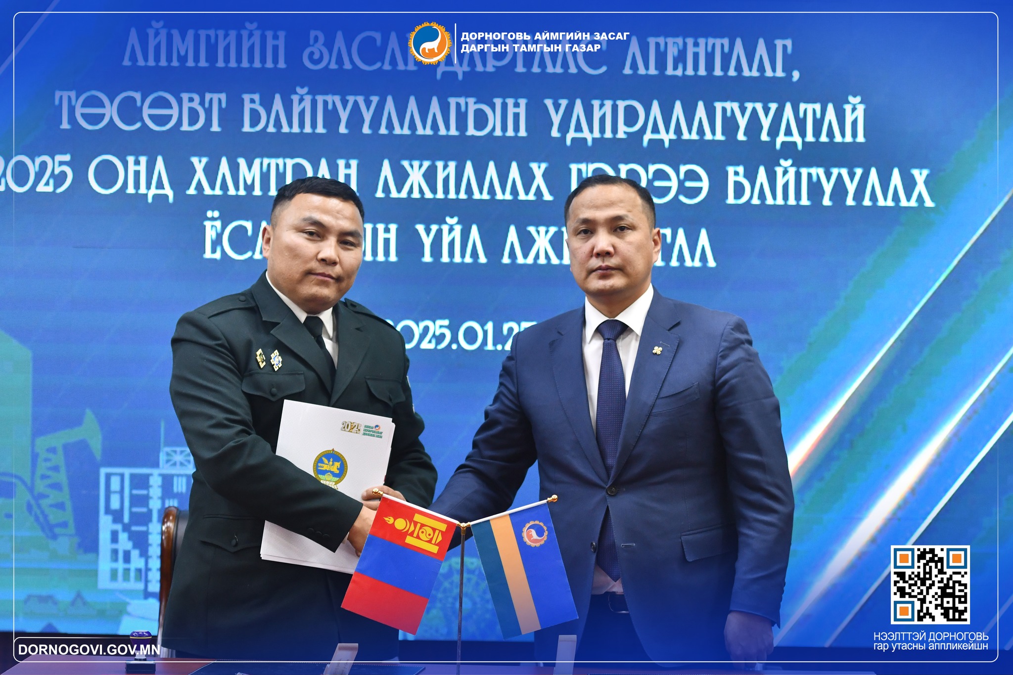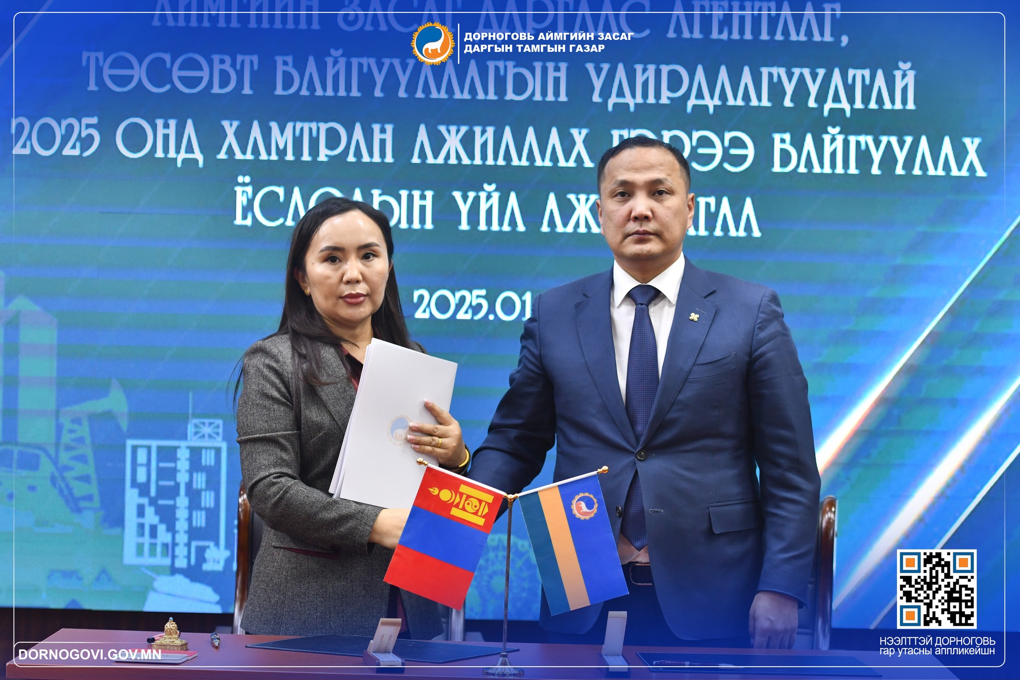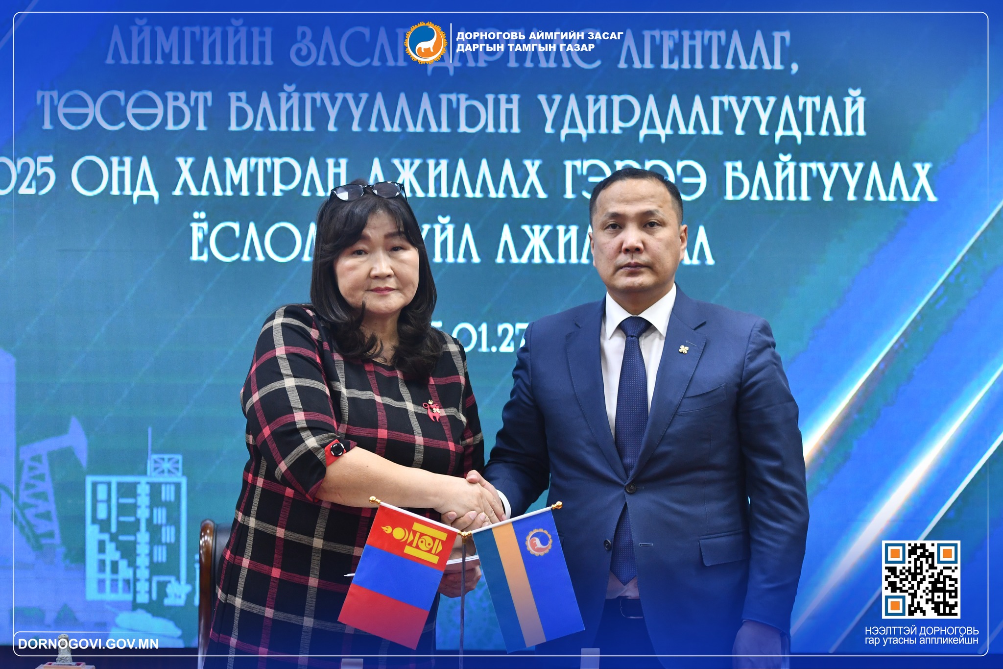 АЙМГИЙН ЗАСАГ ДАРГААС СУМЫН ЗАСАГ ДАРГА, АГЕНТЛАГ, БАЙГУУЛЛАГЫН ДАРГА НАРТАЙ 2025 ОНД ТӨЛӨӨЛӨН ГҮЙЦЭТГҮҮЛЭХ, ХАМТРАН АЖИЛЛАХ ГЭРЭЭ БАЙГУУЛЛАА