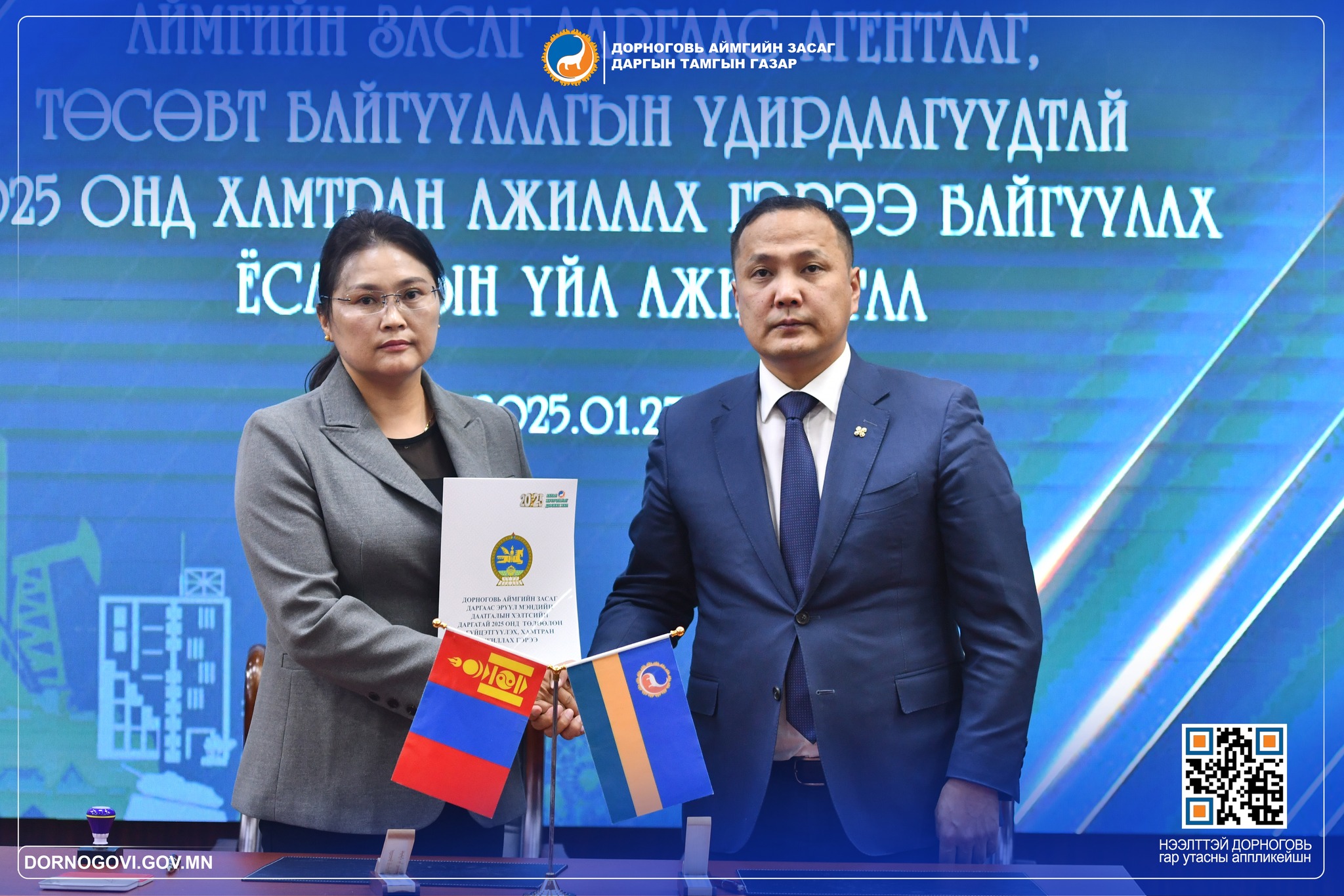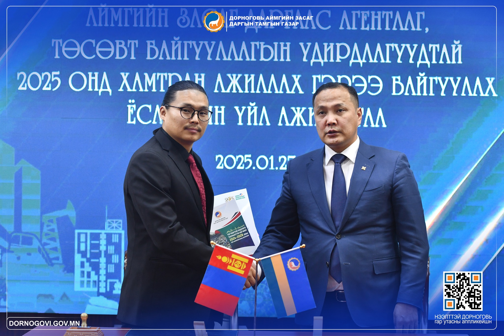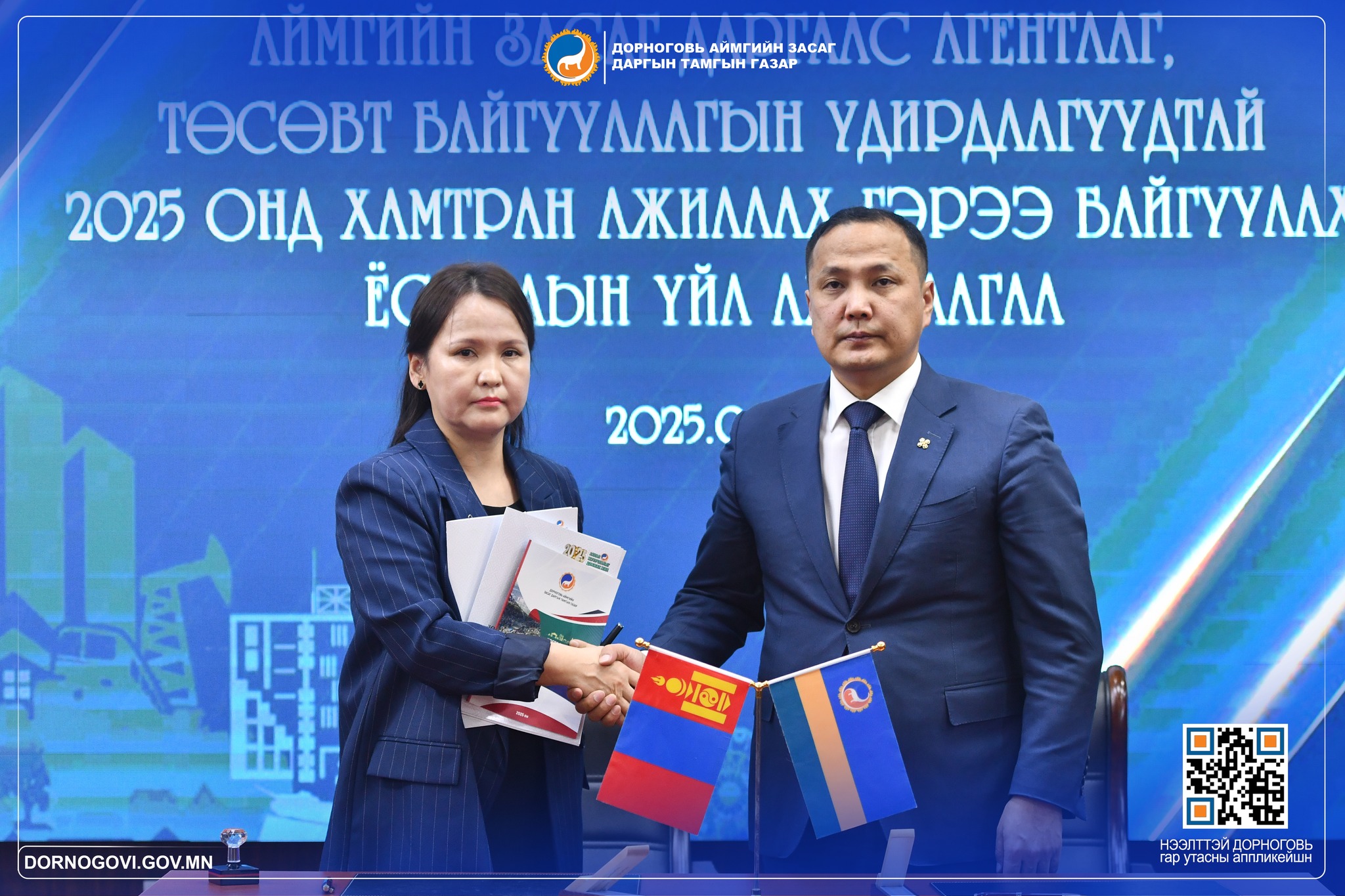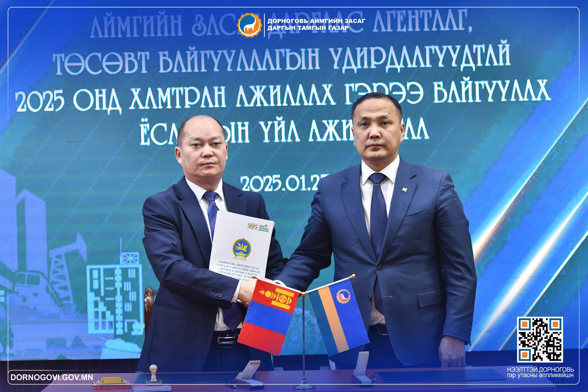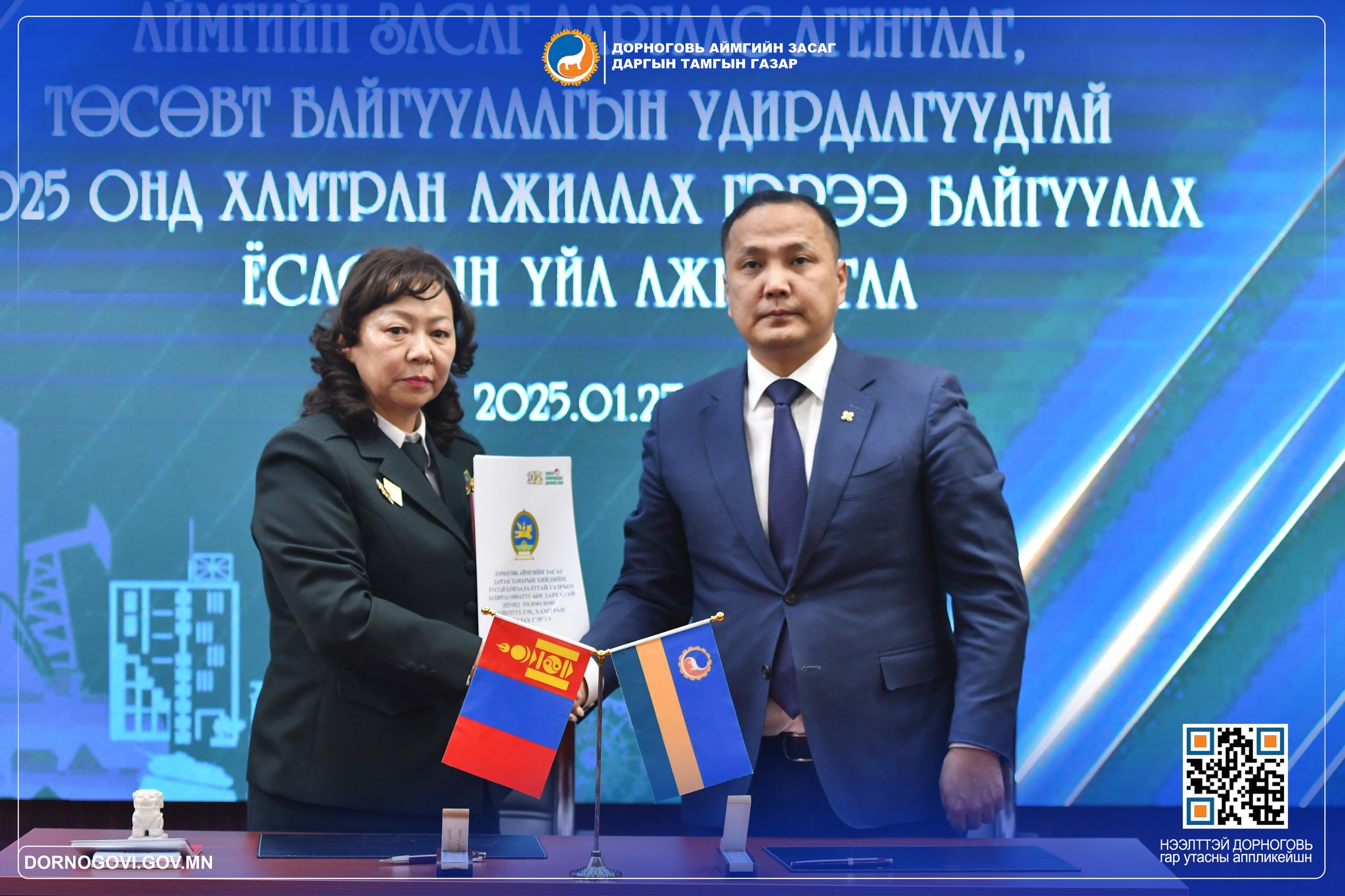 АЙМГИЙН ЗАСАГ ДАРГААС СУМЫН ЗАСАГ ДАРГА, АГЕНТЛАГ, БАЙГУУЛЛАГЫН ДАРГА НАРТАЙ 2025 ОНД ТӨЛӨӨЛӨН ГҮЙЦЭТГҮҮЛЭХ, ХАМТРАН АЖИЛЛАХ ГЭРЭЭ БАЙГУУЛЛАА