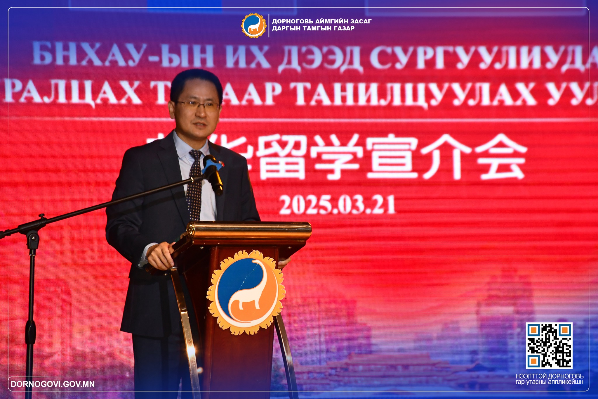 Аймгийн Засаг дарга О.Батжаргал уулзалтын үеэр “Гадаад улсад тэр дундаа Хятад улсад суралцахаар сонирхож буй оюутан залуучууддаа хандаж хэлэхэд нийтлэг мэргэжлүүдээр бус, сонгох гэж байгаа мэргэжлийнхээ талаар бүрэн мэдээлэлтэй байж аль болох нарийн мэргэжлийн, дутагдаж байгаа мэргэжлээр сурахыг эрмэлзэхийн сацуу олон төрлийн мэргэжлийг судалж үзээрэй” гэж гэж зөвлөв.