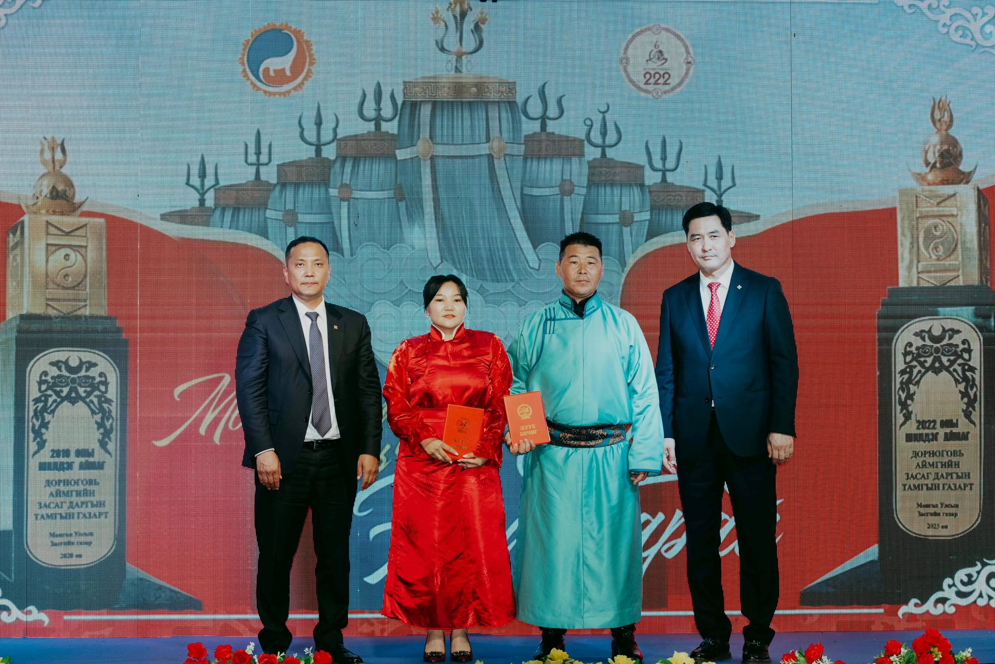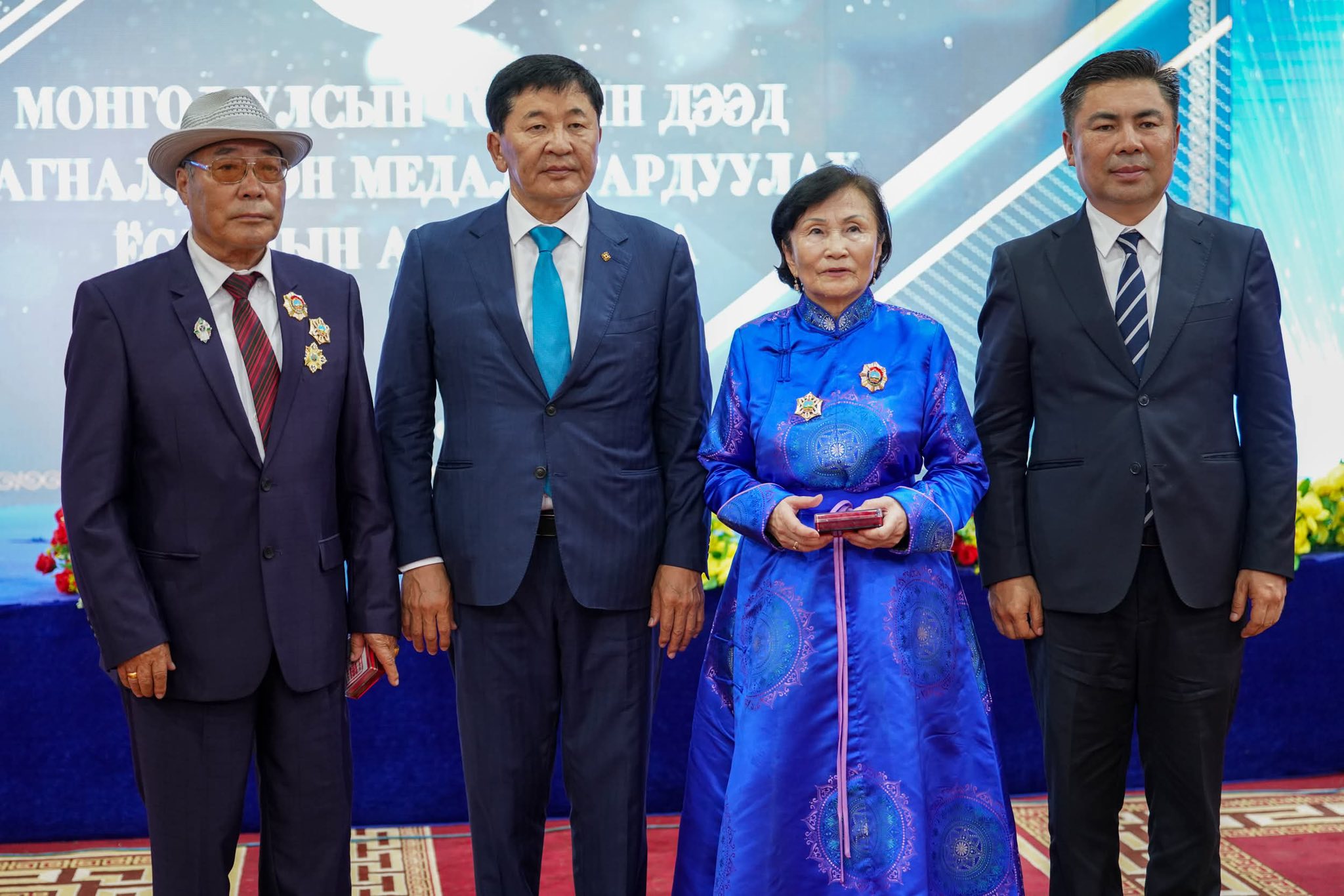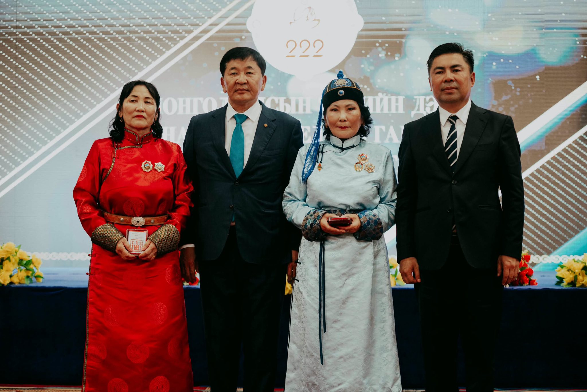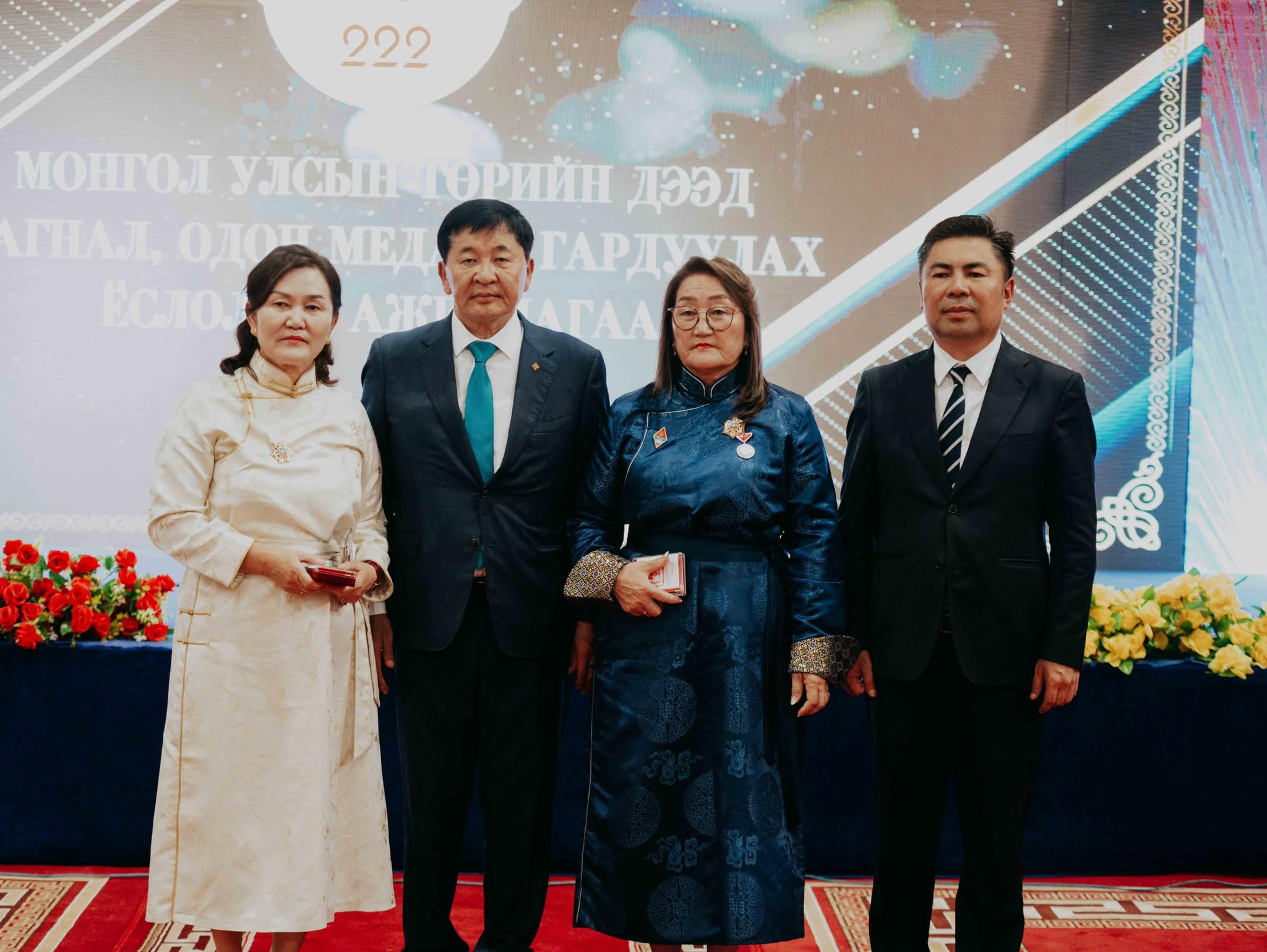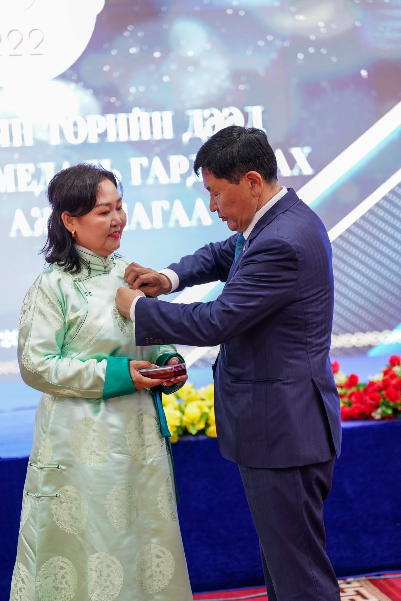 АРДЫН ХУВЬСГАЛЫН 104 ЖИЛ, ДОРНОГОВЬ АЙМАГ БАЙГУУЛАГДСАНЫ 94 ЖИЛ, НОЁН ХУТАГТ ДУЛДУЙТЫН ДАНЗАНРАВЖААГИЙН МЭЛМИЙ ГИЙСНИЙ 222 ЖИЛИЙН ОЙН БАЯР НААДМЫН БАЯРЫН ХУРЛААР ТӨРИЙН ДЭЭД ОДОН МЕДАЛЬ, САЛБАРЫН ТЭРГҮҮНИЙ АЖИЛТНУУДАД ШАГНАЛЫГ ГАРДУУЛАН ӨГЛӨӨ
