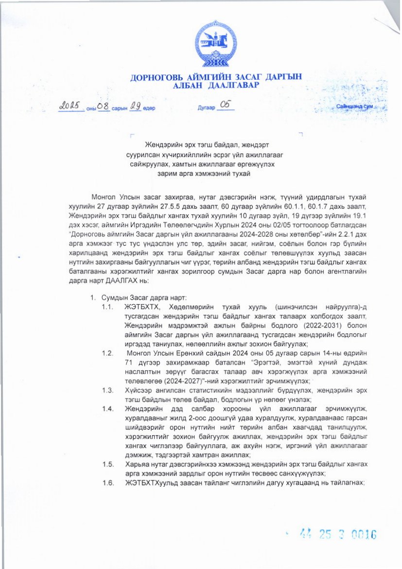 Жендэрийн эрх тэгш байдал, жендэрт суурилсан хүчирхийллийн эсрэг үйл ажиллагааг сайжруулах, хамтын ажиллагааг өргөжүүлэх зарим арга хэмжээний тухай